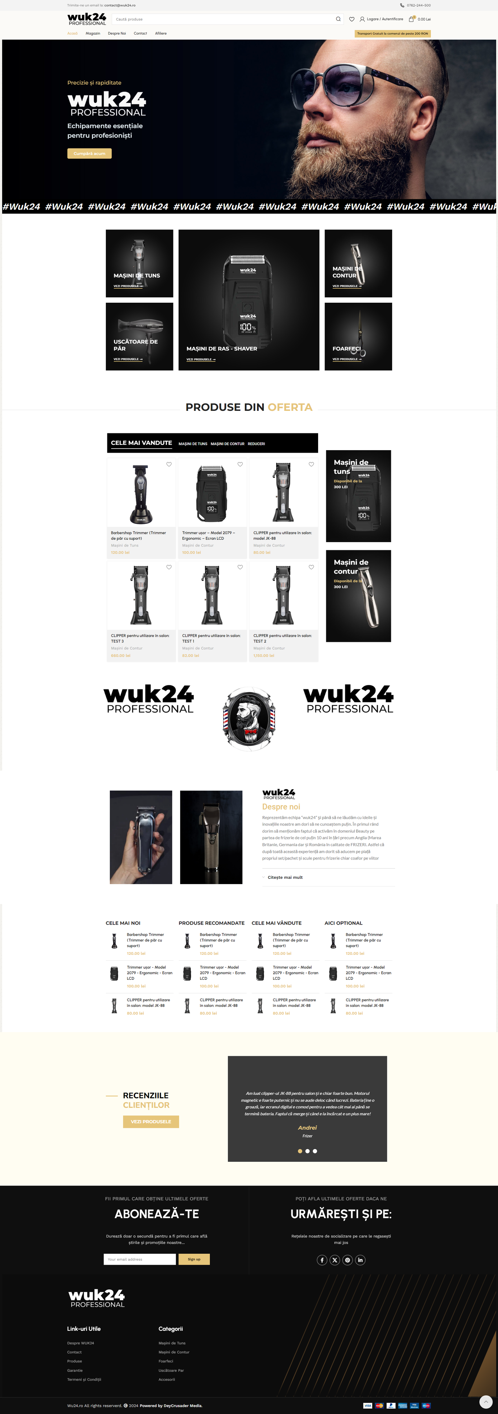 Wuk24.ro este destinat profesioniștilor din domeniul frizeriei, oferind o selecție meticuloasă de produse de înaltă calitate, cum ar fi shavere, foarfece, și alte accesorii esențiale, toate sub brandul propriu Wuk24.