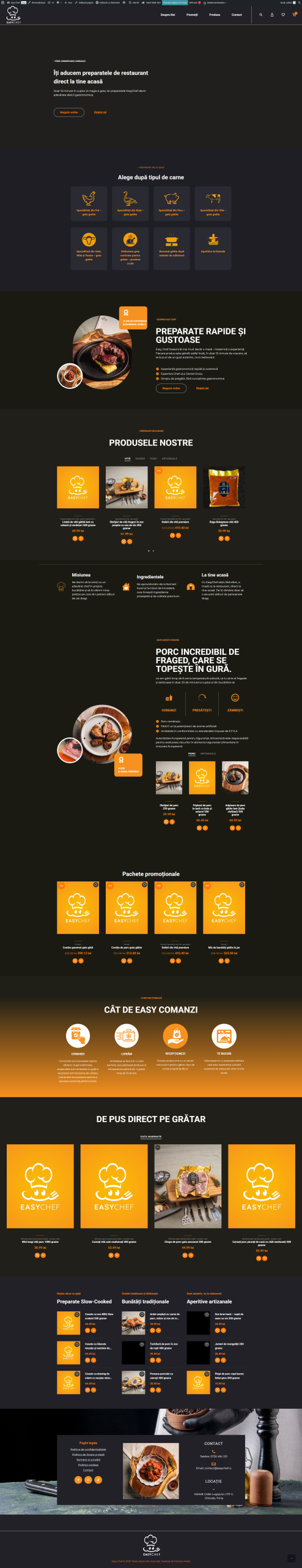 EasyChef este un brand inovativ dedicat celor care doresc să se bucure de mese sănătoase, gustoase și ușor de preparat, chiar și într-un program încărcat. Acesta a fost creat din dorința de a aduce experiența culinară de restaurant direct în confortul propriei case. Mâncărurile sunt bazate pe rețete echilibrate, ce pot fi finalizate rapid, în doar câteva minute.