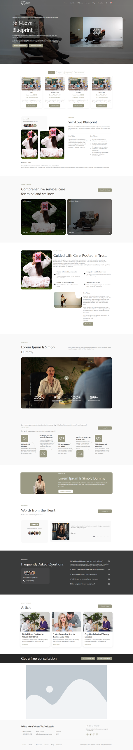 Vanessa Coman este un website creat pentru a promova cursurile online de psihologie dezvoltate de psihologul Vanessa Coman. Platforma pune la dispoziție programe etapizate, structurate clar și ușor de parcurs, astfel încât oricine să poată înțelege și aplica conceptele psihologice în viața de zi cu zi. Prin experiența sa profesională și abordarea inovatoare, Vanessa reușește să aducă un plus de valoare educației online, transformând informațiile teoretice în resurse practice, accesibile și atractive. Site-ul este gândit să ofere nu doar cunoștințe, ci și un parcurs bine organizat pentru dezvoltare personală și profesională.