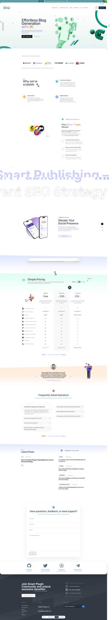 Smart-plugin este un website de prezentare dedicat unui plugin inovator care publică automat articole și bloguri pe site-urile clienților. Conținutul generat este optimizat SEO, astfel încât utilizatorii să economisească timp și să își crească vizibilitatea online fără efort suplimentar.